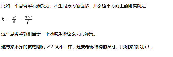 對(duì)于結(jié)構(gòu)來說,一根杠件的抗彎度并不能反映主要問題,我們更關(guān)心的是結(jié)構(gòu)在力的作用下產(chǎn)生的位移,也就是說要分清楚是哪個(gè)力和哪個(gè)位移的關(guān)系,剛度也要具體到是哪個(gè)力與哪個(gè)位移之間的剛度。