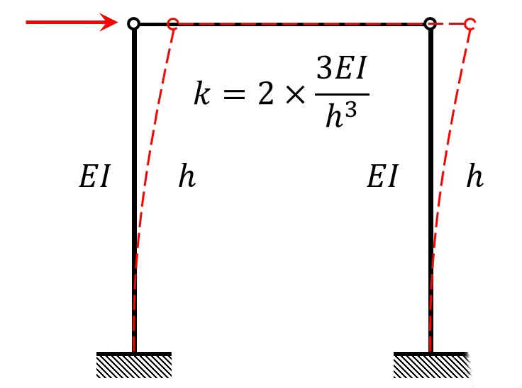 比如上圖中的排架,如果在水平力作用下產(chǎn)生水平位移,兩個(gè)柱子就相當(dāng)于懸臂梁,那么途中箭頭方向上的剛度就是